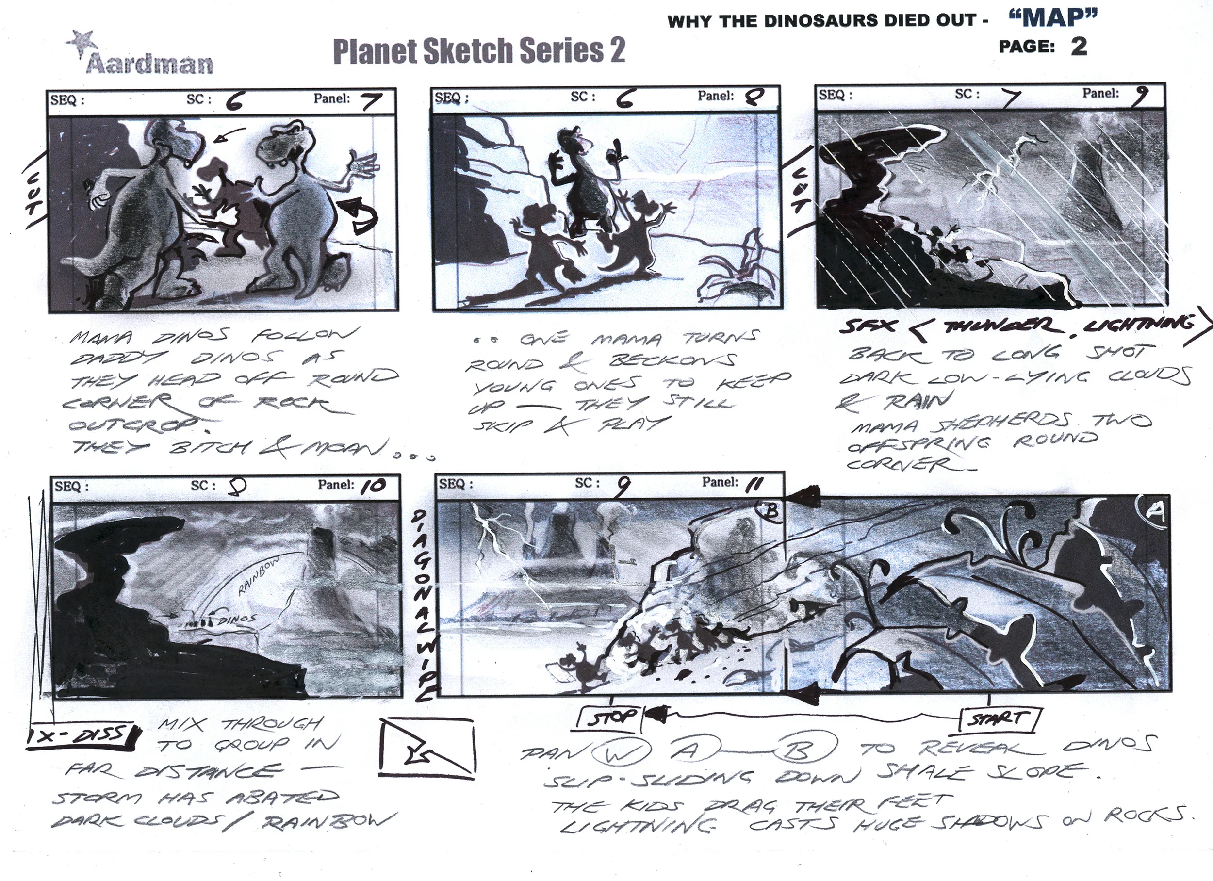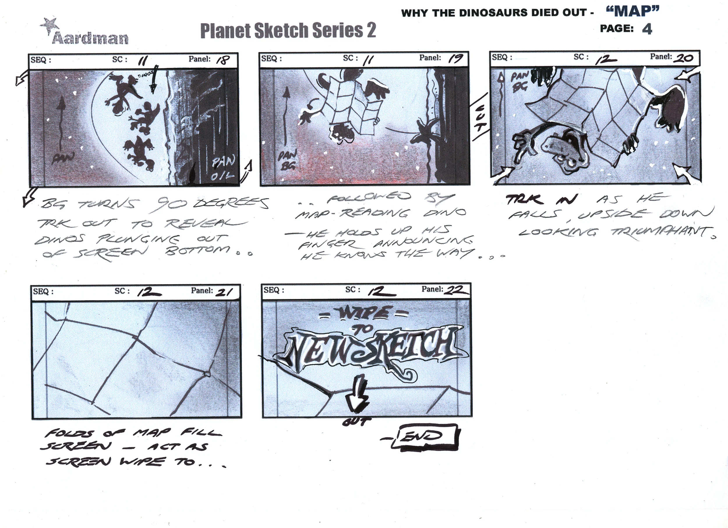 Storyboard for a comedy sketch for a show entitled "Planet Sketch".